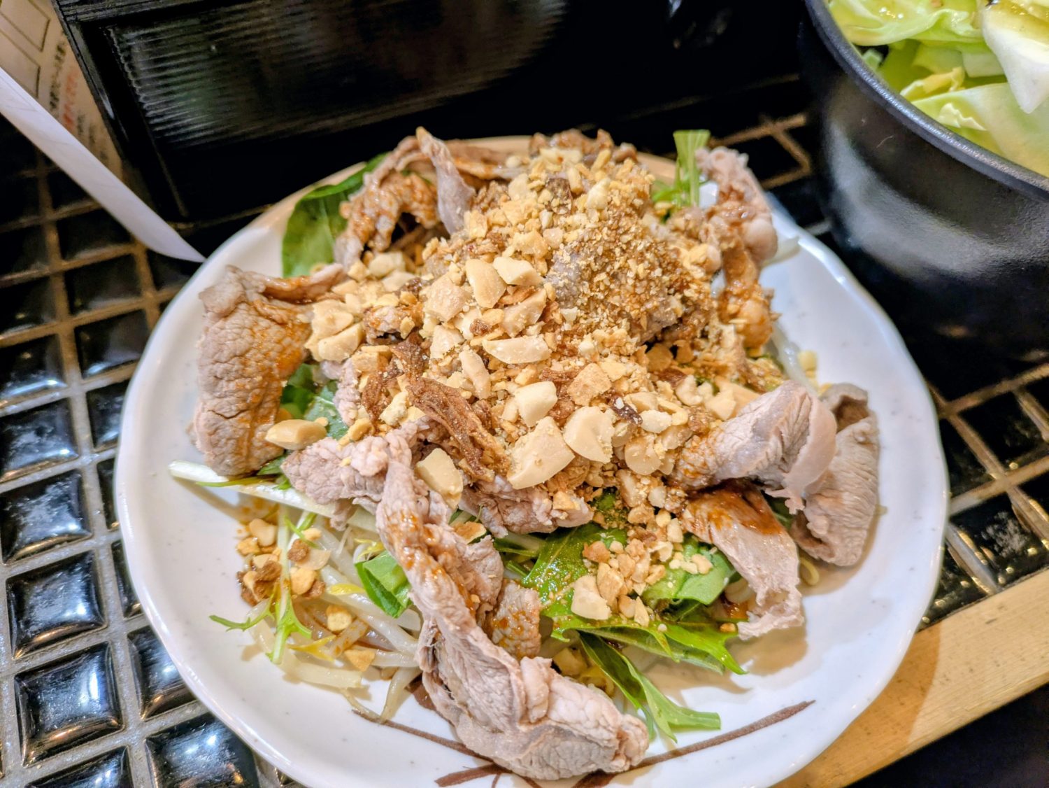 ラム肉の冷製しゃぶしゃぶなのですが、ソースがピリ辛で