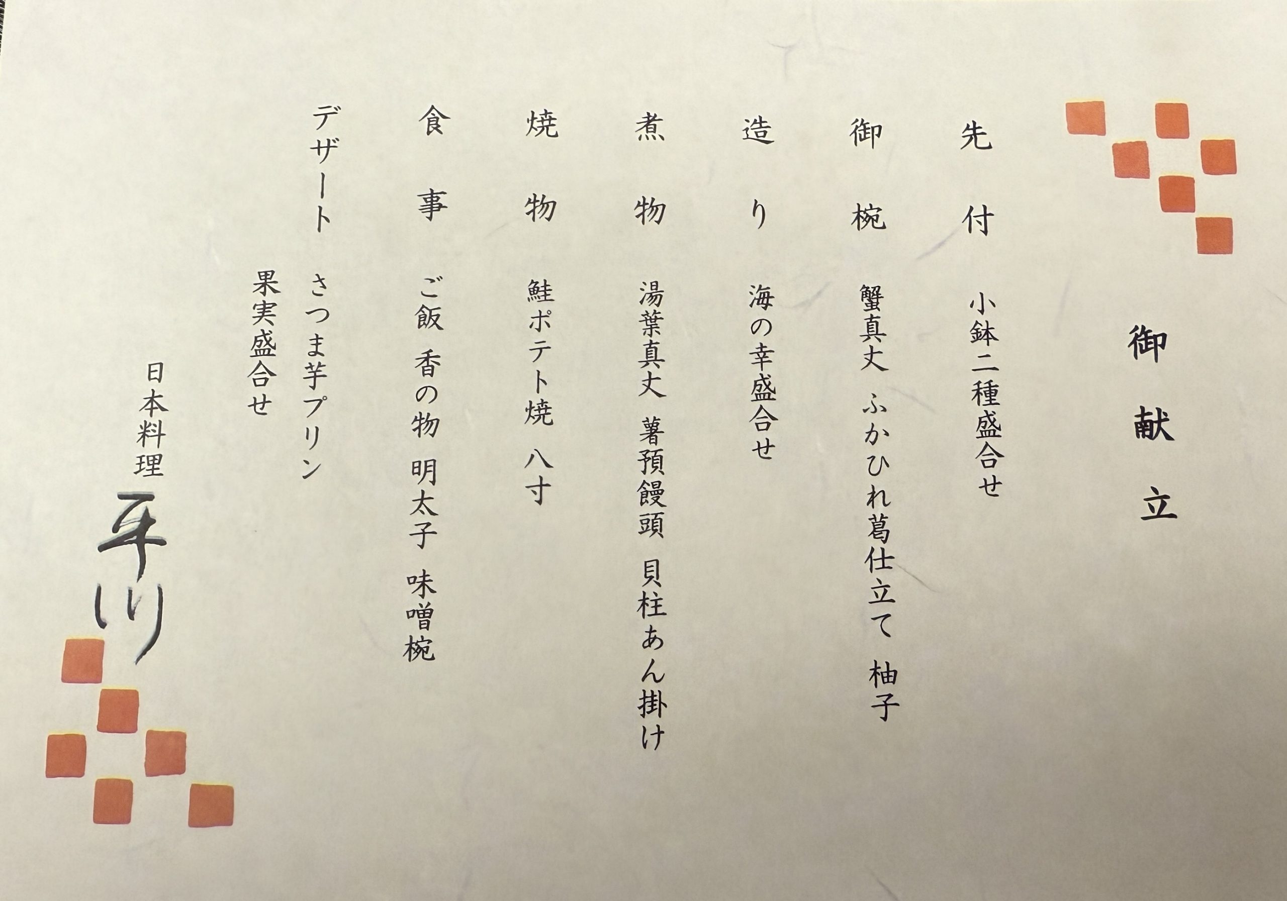 このお品書き、JREポイントのランクが2回連続でプレミアム会員だとプレゼントされるんです。