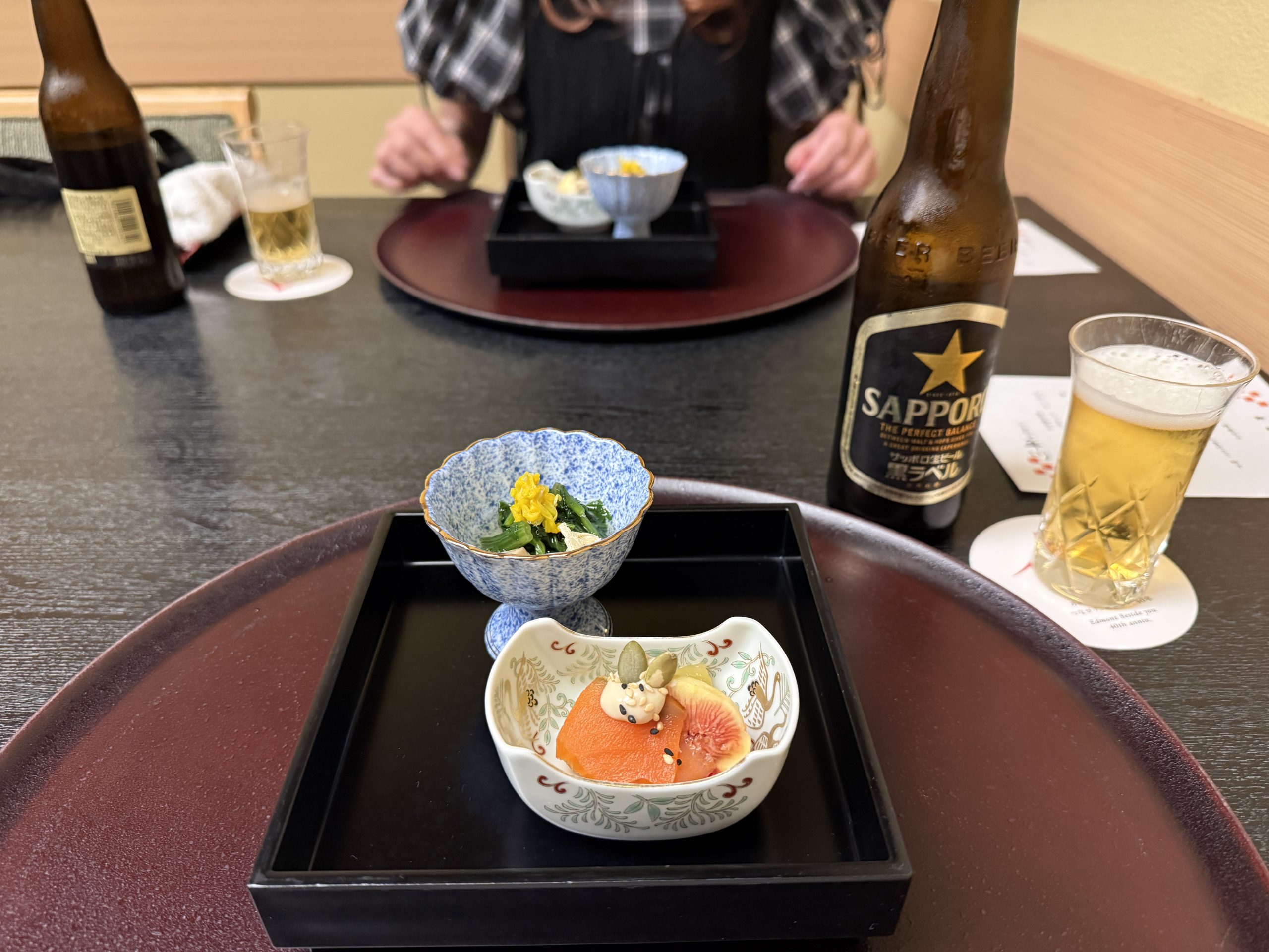 御椀、お造り、煮物、焼物、食事🍚、デザート🍰とフルコース