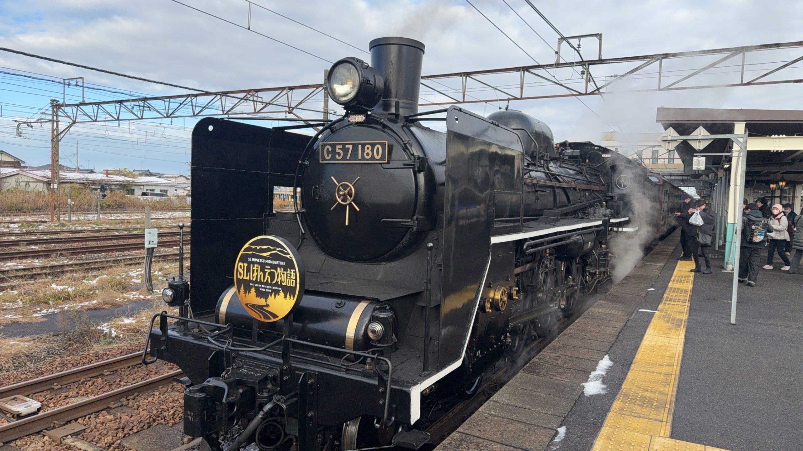 なんとSL(蒸気機関車)が発車待ちをしているではないですか。