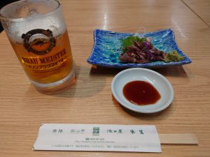 居酒屋新幹線はイカのつまみとワンカップと梅水晶と地酒豊盃