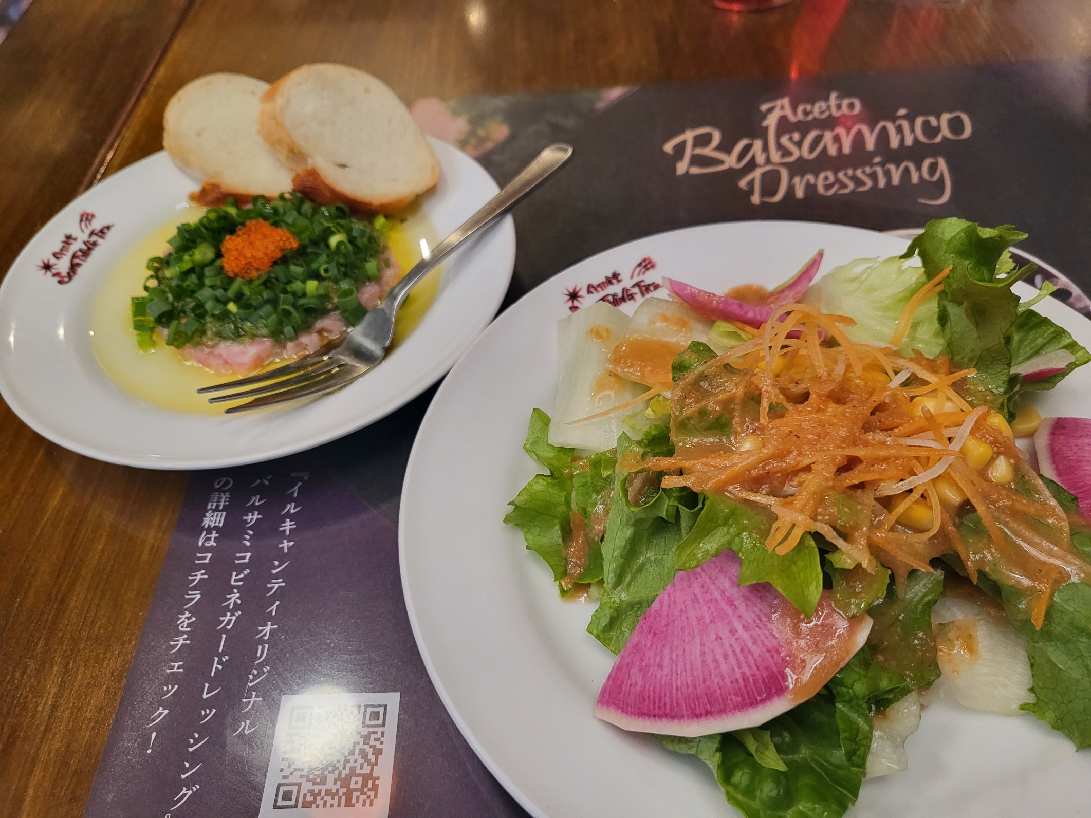 こちらの特製ドレッシングが絶品で、今回もサラダとネギトロを