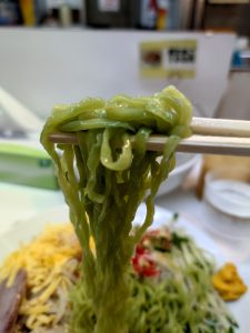 麺は緑色です笑(クロレラ配合とのこと)