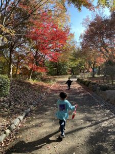 紅葉が楽しめる眺めも最高で、豊かな自然環境のなかに大型の遊具がたくさんあって